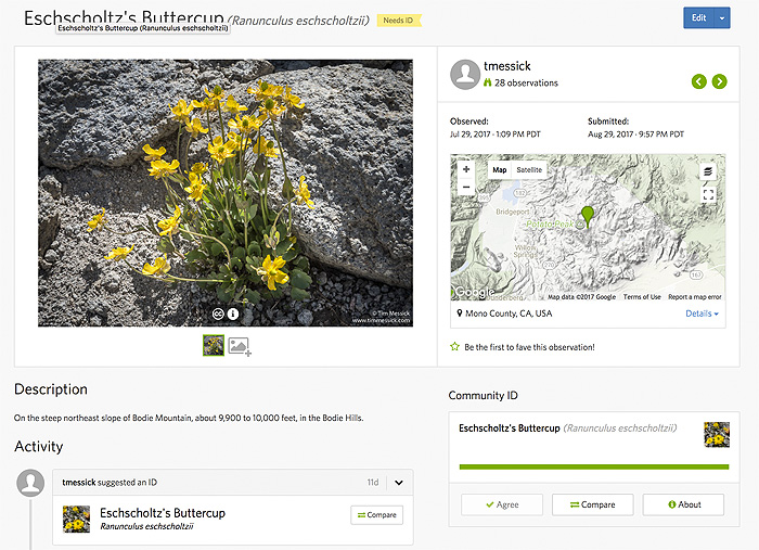 The project is still young and it will be interesting to watch it grow in the years ahead. iNaturalist began as a student’s final project in the UC Berkeley School of Information in 2008. It was acquired by Cal Academy in 2014 and has a small staff supporting the project. Do you have photos of identifiable biota in Mono County or anywhere else in the world? Share them on iNaturalist!