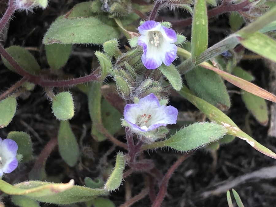Phacelia curvipes (Washoe phacelia) has been found at two locations in the southwestern Bodie Hills (here and here). It’s a small annual with blue and white flowers, somewhat like the locally very common Phacelia humilis, but with more decumbent, spreading (rather than erect) stems. Phacelia curvipes has been seen and collected in many places near the west edges of the Mojave and Great Basin deserts in California and Nevada, and across to southwestern Utah and northwestern Arizona, but these are the first records of it in the Bodie Hills.