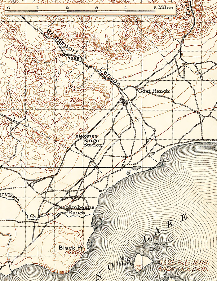 Thirty-two years later, in 1898, Joseph Congdon collected Atriplex canescens, Opuntia polyacantha, and probably also Artemisia nova along a what he called the “Mono to Bodie (Desert Road)” and a “side-road between Goat Ranch and Bridgeport.” I believe these were along what is now Coyote Springs Road in Bridgeport Canyon. This was for many years the main route from Mono Basin to Bridgeport, before roads were established over Conway Summit. Congdon was a lawyer who lived in Mariposa, 1882–1905, and contributed significantly to early botanical exploration, particularly in the Yosemite region.